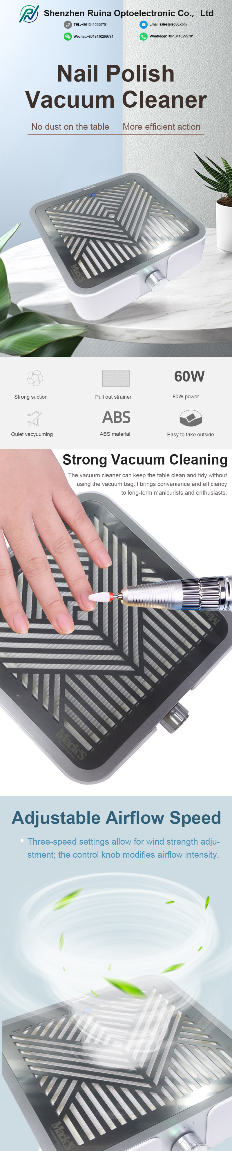 한국어เซินเจิ้น Ruina Optoelectronic Co.,Ltd. ชั้นนำของจีน ผู้ผลิตผู้จัดจำหน่ายและส่งออกเครื่องดูดฝุ่นเล็บแบบปรับความเร็วได้ ยึดมั่นในการแสวงหาคุณภาพที่สมบูรณ์แบบของผลิตภัณฑ์เพื่อให้เครื่องดูดฝุ่นเล็บแบบปรับความเร็วได้ของเราได้รับความพึงพอใจจากลูกค้าจำนวนมาก การออกแบบขั้นสุดยอด วัตถุดิบที่มีคุณภาพ ประสิทธิภาพสูง และราคาที่แข่งขันได้คือสิ่งที่ลูกค้าทุกคนต้องการ และนั่นคือสิ่งที่เราสามารถเสนอให้คุณได้เช่นกัน แน่นอนว่าบริการหลังการขายที่สมบูรณ์แบบของเราก็เป็นสิ่งสำคัญเช่นกัน
