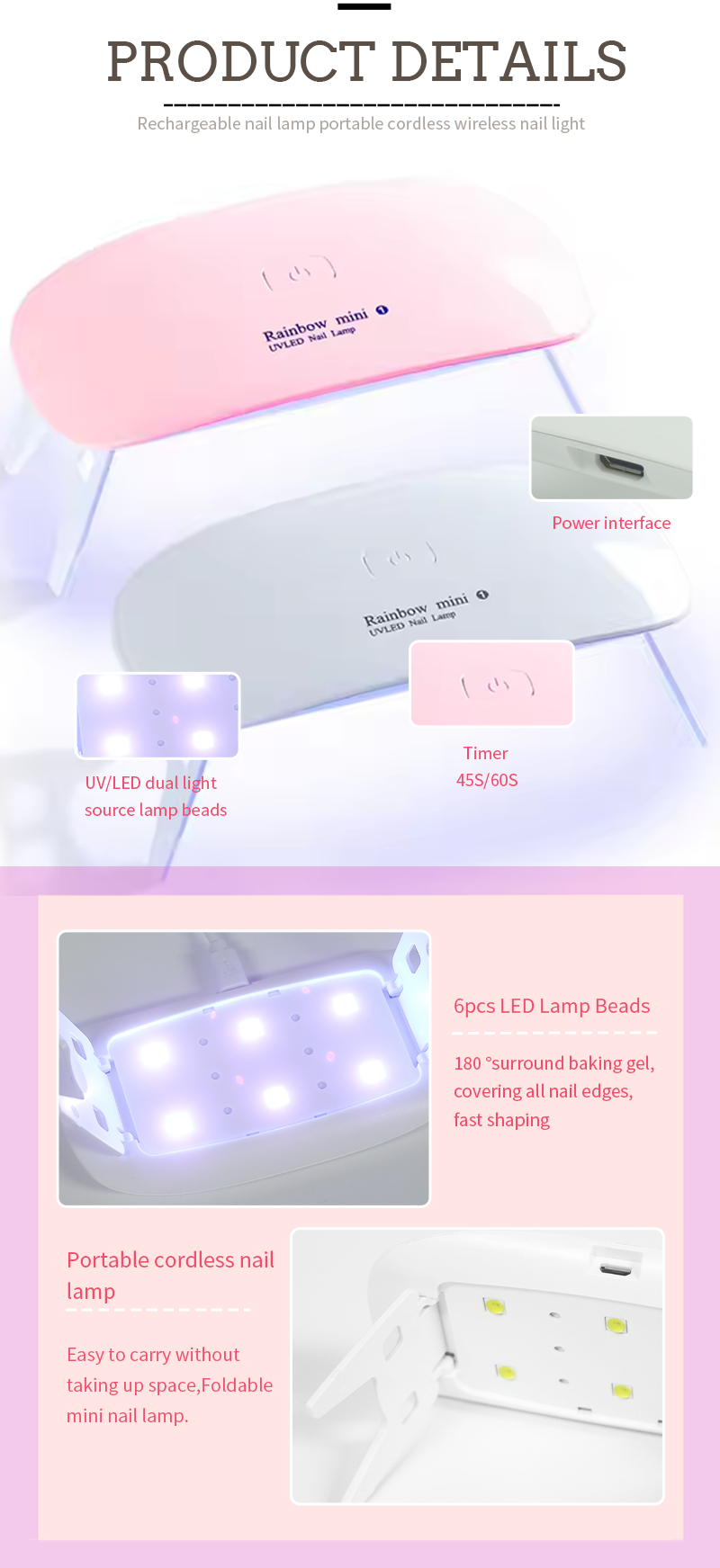 한국어เซินเจิ้น Ruina Optoelectronics Co., Ltd. ในฐานะผู้ผลิต ผู้จัดจำหน่าย และส่งออกโคมไฟเล็บเจลขนาดกะทัดรัดชั้นนำของจีน ยึดมั่นในปรัชญาของการแสวงหาคุณภาพที่สมบูรณ์แบบอย่างต่อเนื่อง ความมุ่งมั่นนี้ทำให้โคมไฟเล็บกาวยูวีสำหรับใช้ในบ้านของเราได้รับความไว้วางใจจากลูกค้าจำนวนมาก การออกแบบที่ยอดเยี่ยม วัตถุดิบระดับพรีเมี่ยม ประสิทธิภาพที่โดดเด่น และราคาที่แข่งขันได้สูง สิ่งเหล่านี้คือสิ่งที่ลูกค้าทุกคนคาดหวังและสิ่งที่เราส่งมอบ แน่นอนว่าการบริการหลังการขายแบบครบวงจรก็ขาดไม่ได้ไม่แพ้กัน
