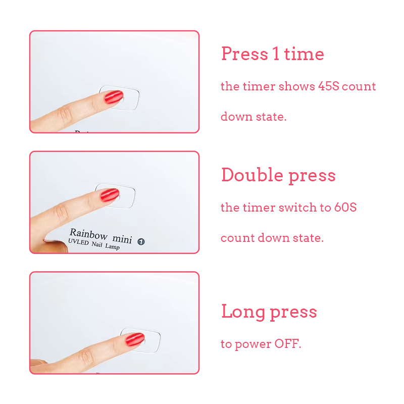 • หลอดไฟ LED กำลังสูงเพื่อการบ่มเจลอย่างรวดเร็วภายใน 10 วินาที