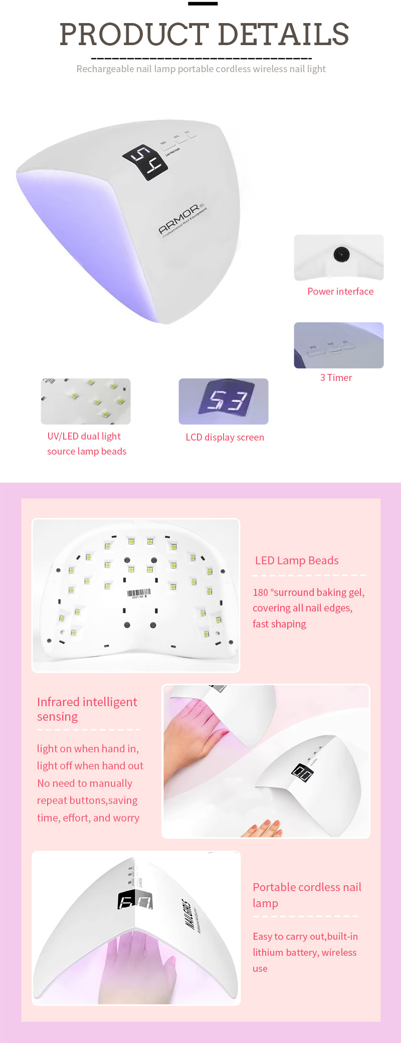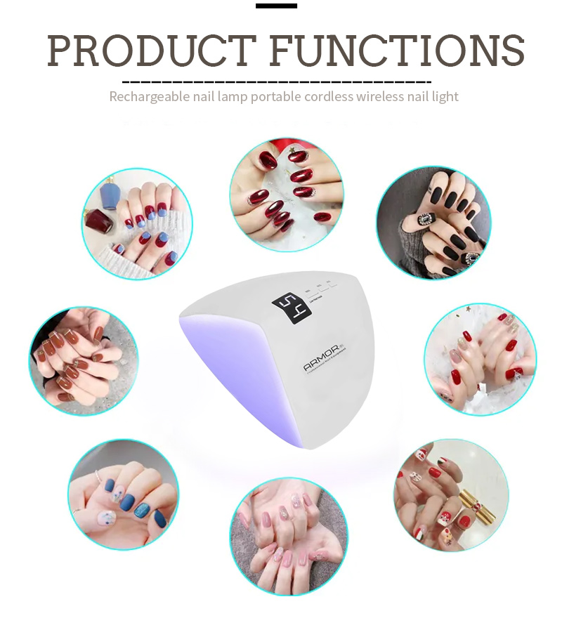 ผลิตภัณฑ์ช่วยให้กาวแห้งสนิทโดยไม่หดตัว แหล่งกำเนิดแสงคู่ให้ความร้อนอย่างอ่อนโยนเพื่อป้องกันมือเปลี่ยนสีและปวดตา เหมาะสำหรับทั้งมือและเท้า ให้ผลลัพธ์ที่แห้งเร็วอย่างน่าทึ่ง