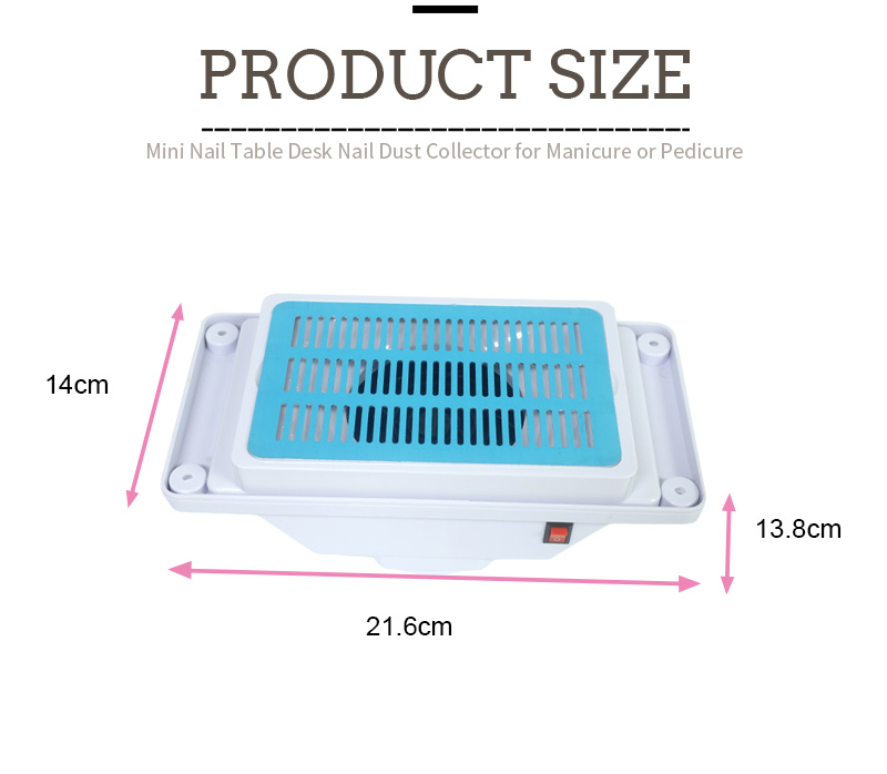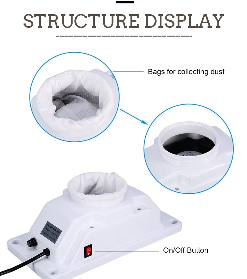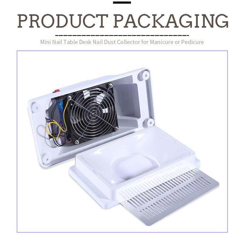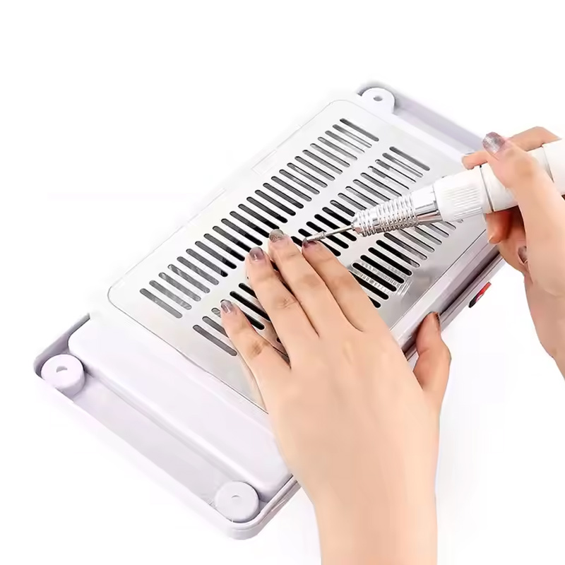 ที่เครื่องกำจัดฝุ่นเล็บแบบฝังบนเดสก์ท็อป เป็นเครื่องดูดฝุ่นในตัวที่ออกแบบมาเพื่อติดตั้งเข้ากับเวิร์กสเตชันของร้านเสริมสวยโดยตรง ต่างจากอุปกรณ์พกพาที่วางบนโต๊ะ รุ่นฝังนี้สร้างพื้นที่ทำงานที่ราบรื่นและไม่เกะกะ โดยจะดักจับฝุ่นอะคริลิกและเจลที่แหล่งกำเนิดในระหว่างการบริการตะไบและขึ้นรูป ป้องกันไม่ให้อนุภาคในอากาศเกาะอยู่บนพื้นผิวหรือถูกช่างเทคนิคและลูกค้าสูดดม
