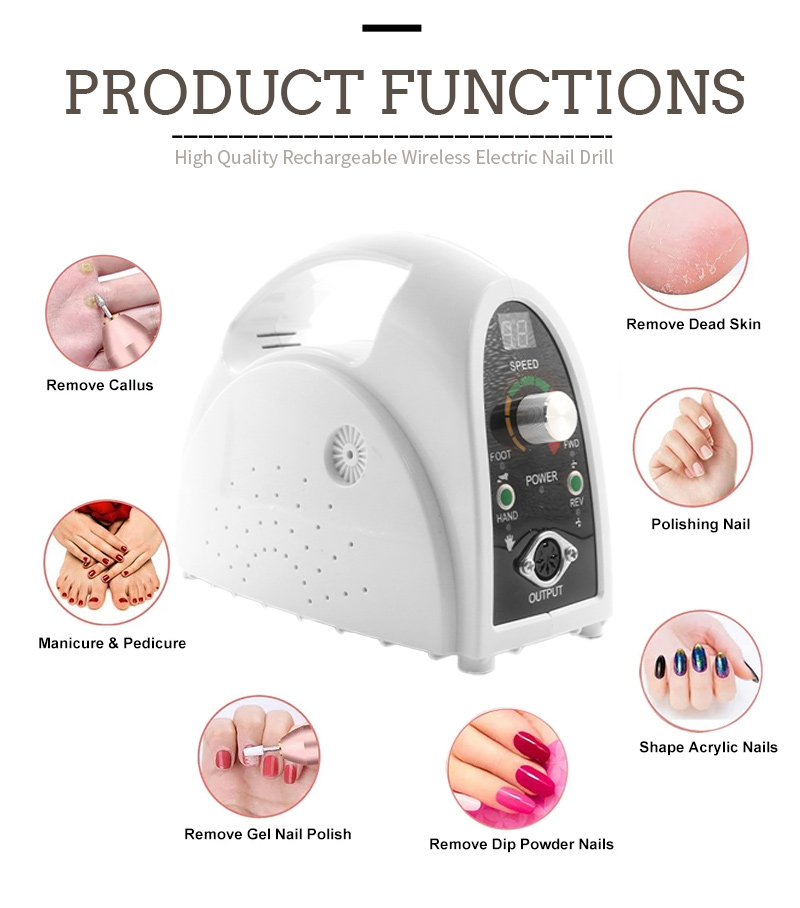 คุณลักษณะของผลิตภัณฑ์และการใช้งานของตะไบเล็บไฟฟ้าสำหรับกำจัดยาทาเล็บความเร็วสูง 702 35000 RPM