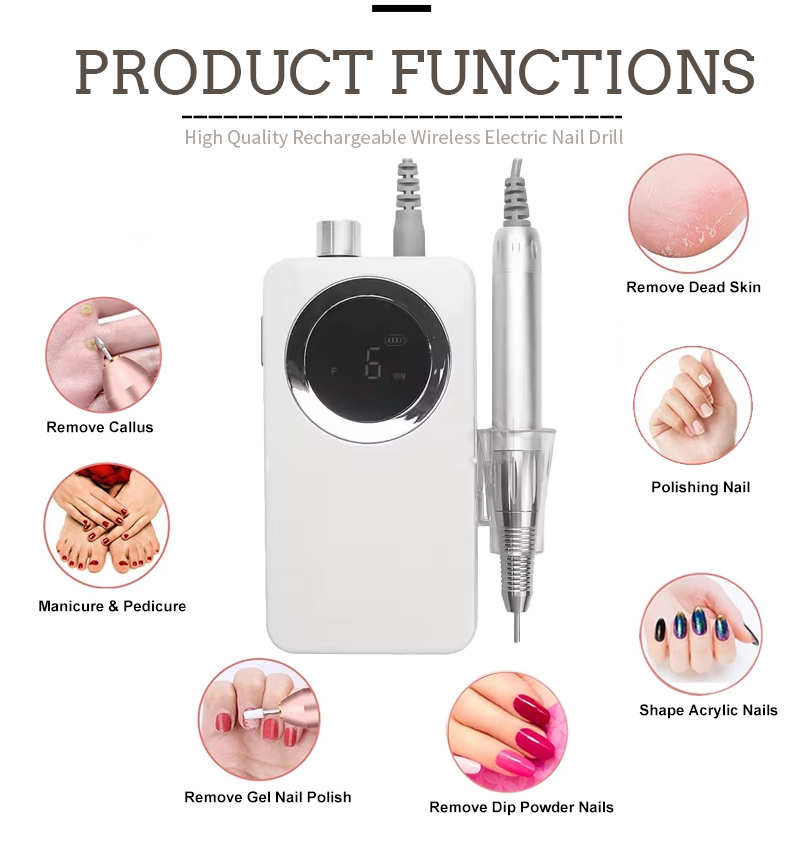 คุณสมบัติผลิตภัณฑ์และการใช้งานของตะไบเล็บไฟฟ้าความเร็วสูง 35,000 รอบต่อนาที 808 สำหรับการขจัดคราบโปแลนด์