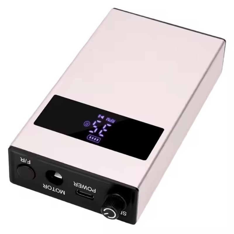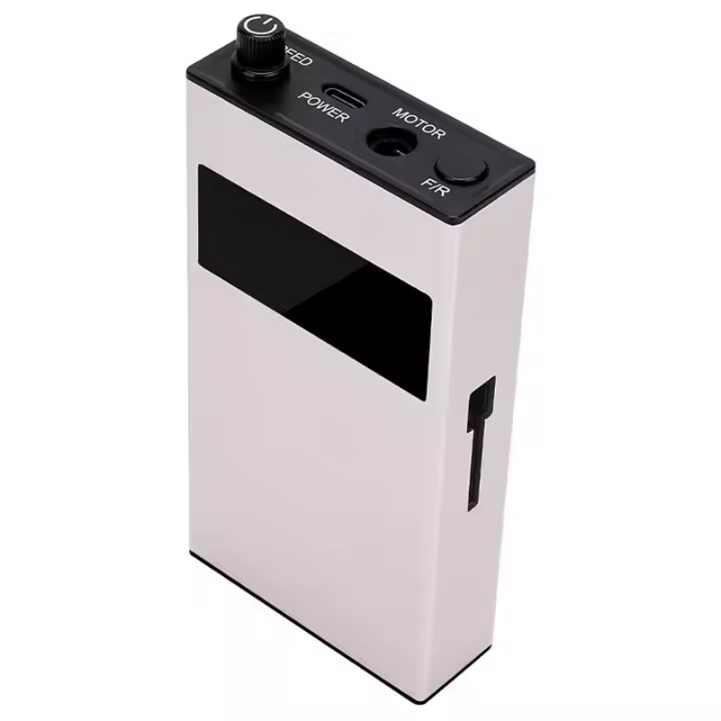 การออกแบบจอแสดงผลของชุดสว่านเล็บแบบพกพาเสียงรบกวนต่ำนี้มีสวิตช์เปิด/ปิดและการหมุนไปข้างหน้า/ย้อนกลับสำหรับการเปิดใช้งานด้วยปุ่มเดียวทั้งหมด ช่องเสียบชาร์จด่วนที่ด้านล่าง ช่องเสียบสว่านแบบเปลี่ยนได้ที่ด้านบน และความเร็วที่ปรับได้สามตำแหน่งเพื่อตอบสนองความต้องการที่หลากหลาย