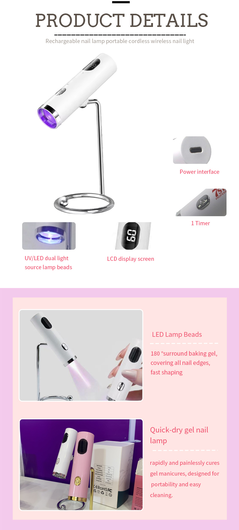 ผลิตภัณฑ์ช่วยให้กาวแห้งสนิทโดยไม่หดตัว แหล่งกำเนิดแสงคู่ให้ความร้อนอย่างอ่อนโยนเพื่อป้องกันมือเปลี่ยนสีและปวดตา เหมาะสำหรับทั้งมือและเท้า ให้ผลลัพธ์ที่แห้งเร็วอย่างน่าทึ่ง
