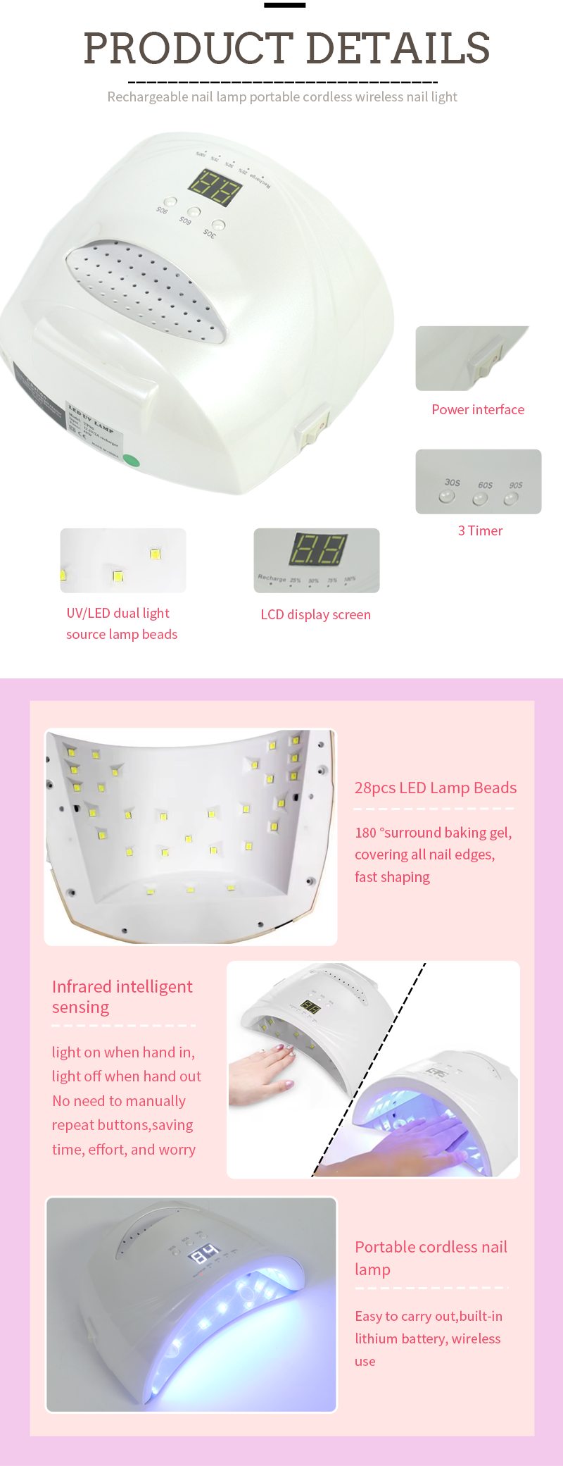 ผลิตภัณฑ์ช่วยให้กาวแห้งสนิทโดยไม่หดตัว แหล่งกำเนิดแสงคู่ให้ความร้อนอย่างอ่อนโยนเพื่อป้องกันมือเปลี่ยนสีและปวดตา เหมาะสำหรับทั้งมือและเท้า ให้ผลลัพธ์ที่แห้งเร็วอย่างน่าทึ่ง
