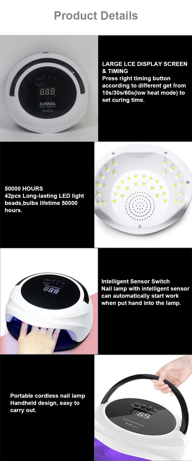 | โคมไฟอบเล็บพร้อมรายละเอียดฟังก์ชั่นเซ็นเซอร์อัตโนมัติ |