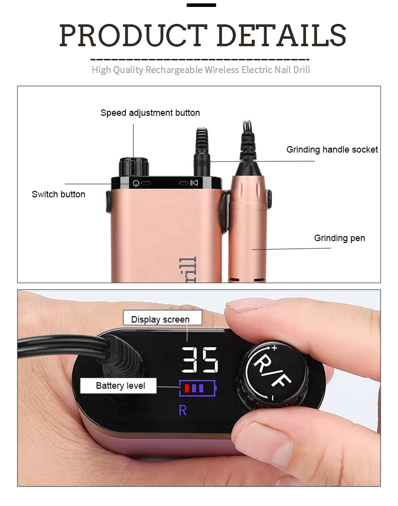 คุณลักษณะของผลิตภัณฑ์และการใช้งานของตะไบเล็บไฟฟ้าสำหรับกำจัดยาทาเล็บความเร็วสูง 022 35000 RPM