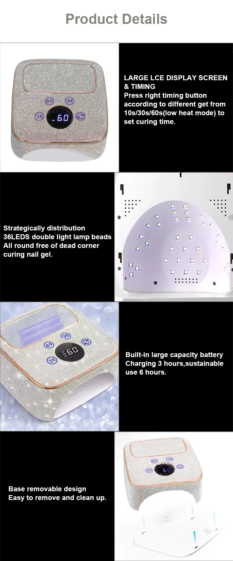 ผลิตภัณฑ์ช่วยให้กาวแห้งสนิทโดยไม่หดตัว แหล่งกำเนิดแสงคู่ให้ความร้อนอย่างอ่อนโยนเพื่อป้องกันมือเปลี่ยนสีและปวดตา เหมาะสำหรับทั้งมือและเท้า ให้ผลลัพธ์ที่แห้งเร็วอย่างน่าทึ่ง