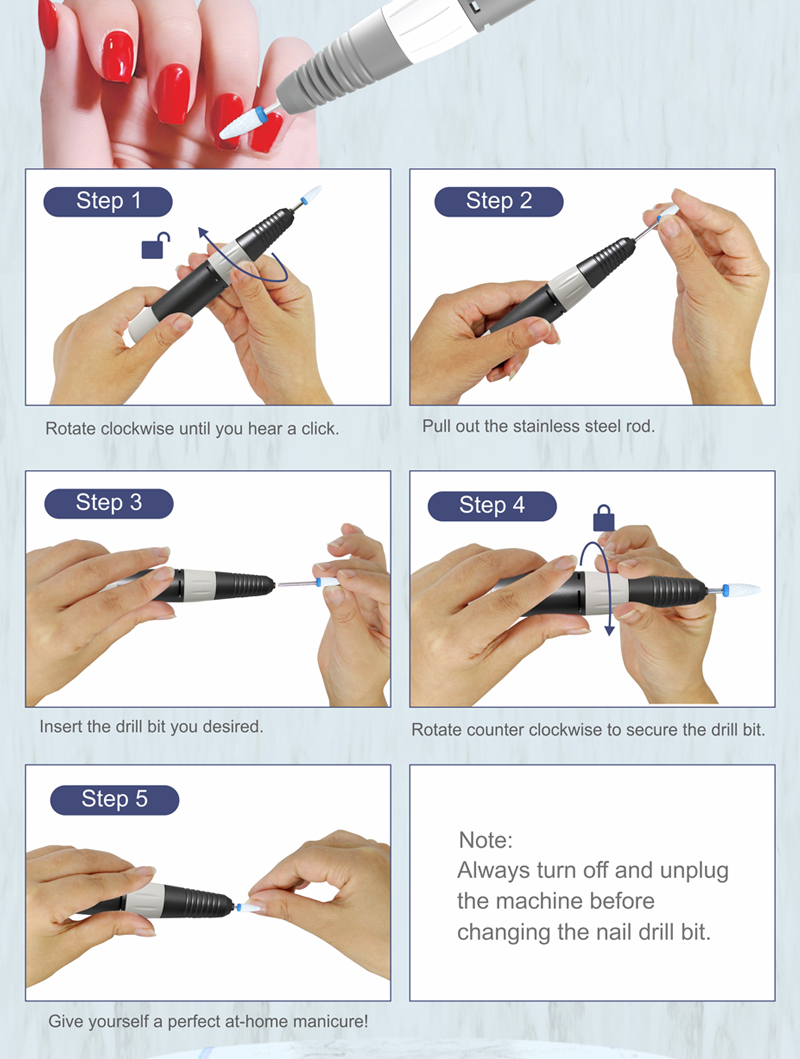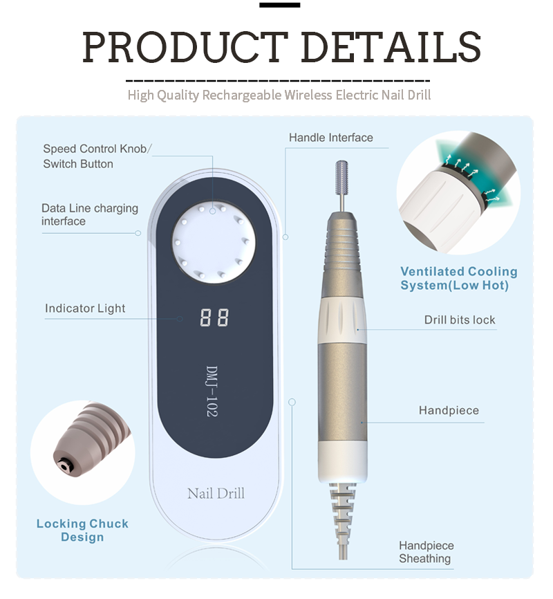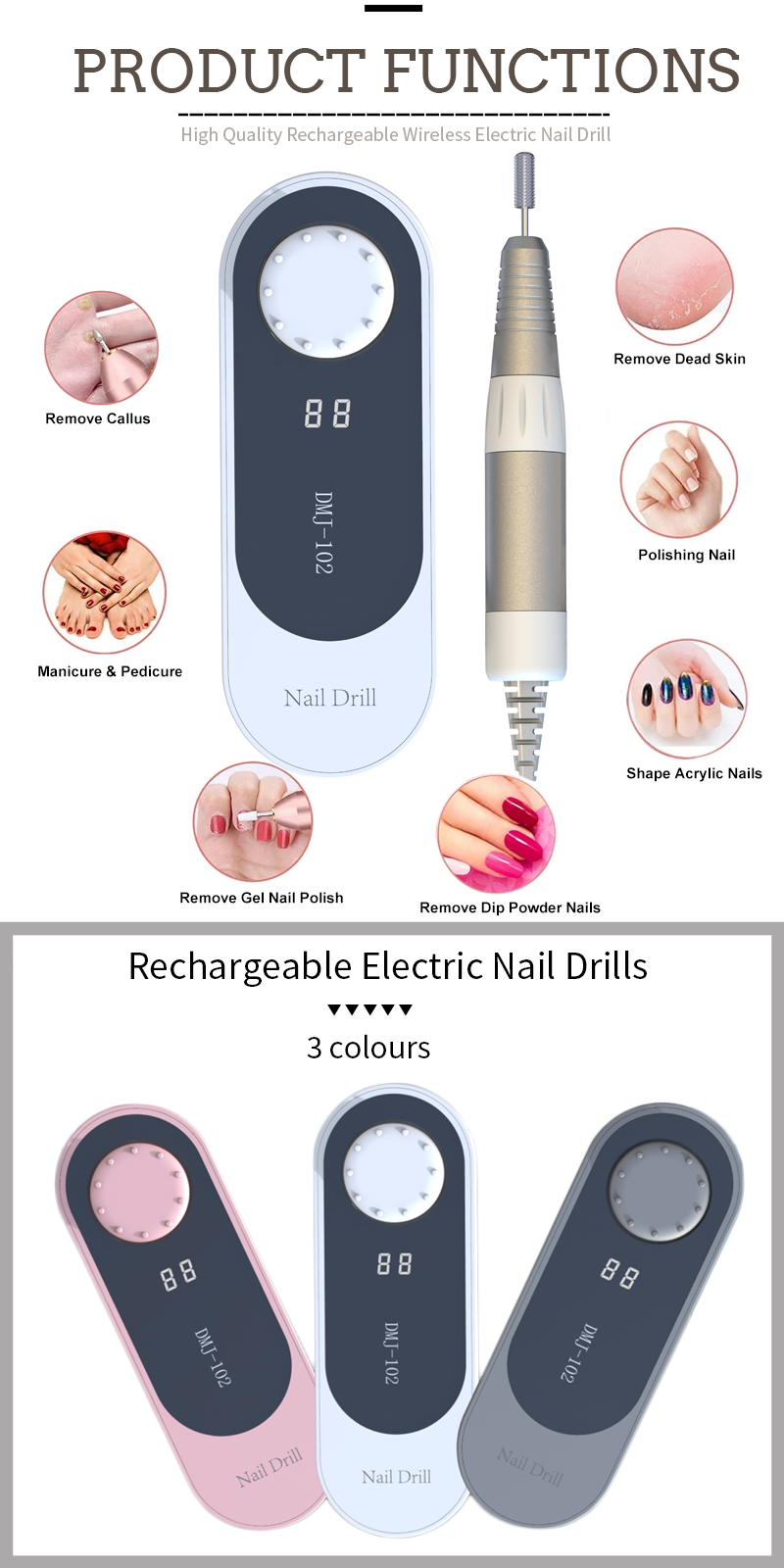 ตะไบเล็บไฟฟ้า DMJ-102 ความเร็วสูง 35,000 รอบต่อนาทีสำหรับการถอดยาทาเล็บ: คุณสมบัติและการใช้งาน