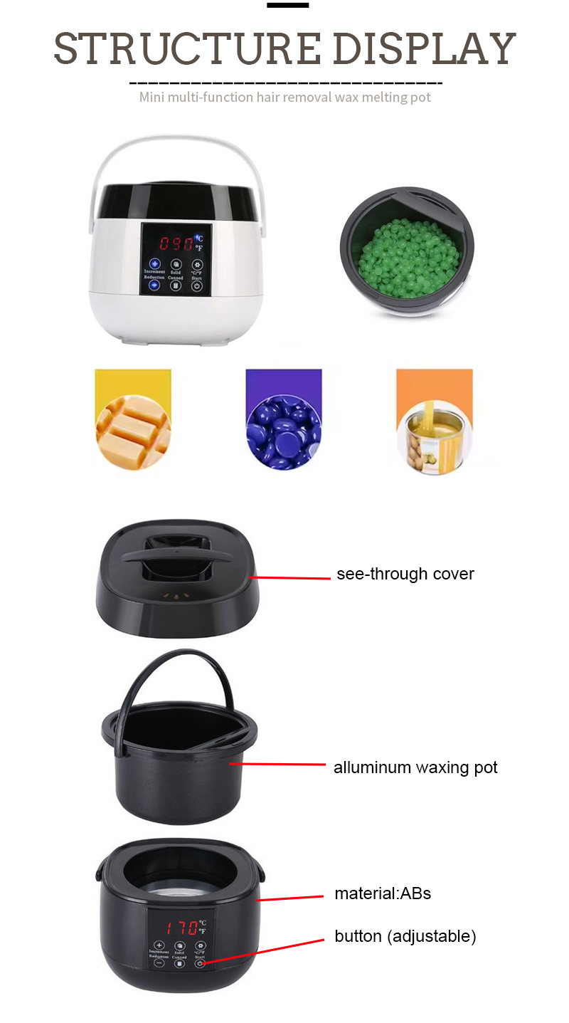 ความจุขนาดใหญ่ในการละลายถั่วแว็กซ์ได้หลากหลาย เปลือกพลาสติก ABS ทนต่ออุณหภูมิสูง เปลือกมีความมันวาวมากขึ้น