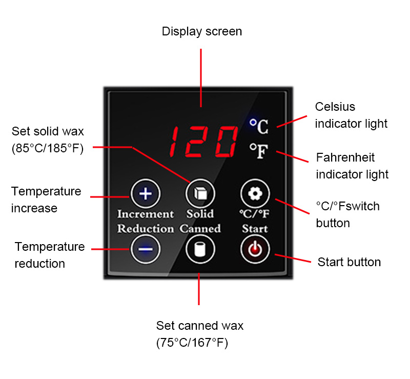 เครื่องแว็กซ์ผลิตภัณฑ์ส่วนใหญ่ใช้วงแหวนทำความร้อนเพื่อสร้างความร้อน และละลายขี้ผึ้งแข็งโดยการสร้างความร้อน ถั่วแว็กซ์ 100 กรัมใช้เวลาเพียงสิบนาทีในการละลาย