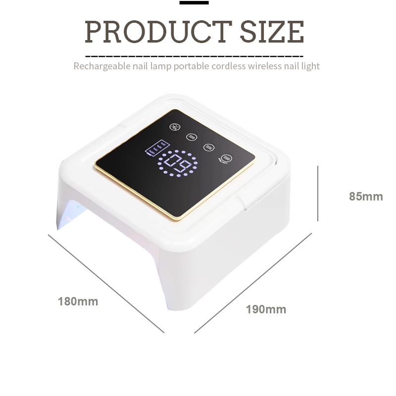 ขนาดของโคมไฟอบเล็บทรงสี่เหลี่ยมมีความยาว 180 มม. กว้าง 190 มม. สูง 85 มม. มีความจุขนาดใหญ่และสามารถใช้งานทั้งมือและเท้าได้สะดวกมาก